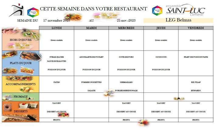 Menu du restaurant scolaire Veuillez retrouver ici le menu de votre restaurant pour la semaine du 17/11/25 au 21/11/25
