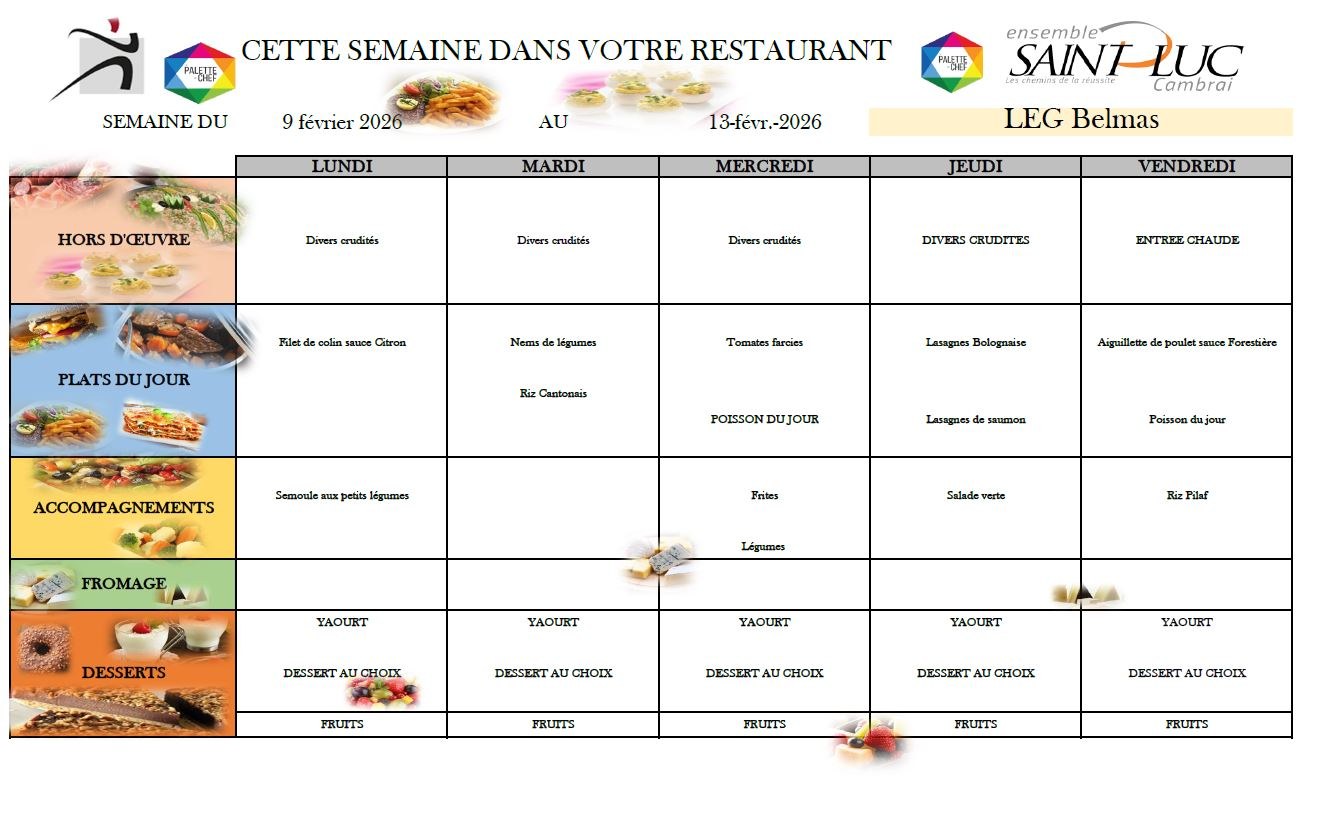 Menu du restaurant scolaire Veuillez retrouver ici le menu de votre restaurant pour la semaine du 09/02/2026 au 13/02/2026